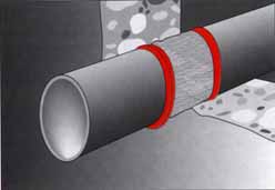 - pro těsnění prostupů plastových trubek skrze požárně dělící konstrukci snížení rychlosti šíření plamene
